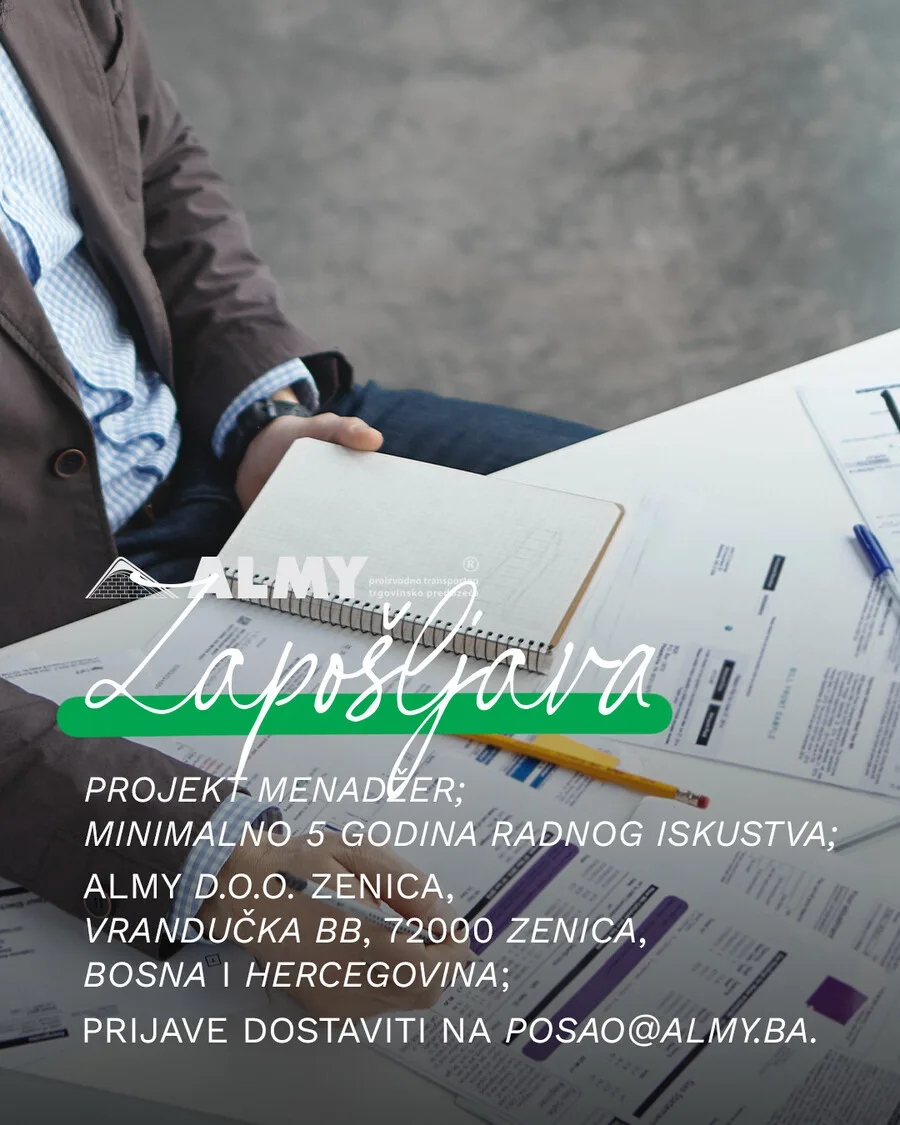Almy d.o.o. Zenica objavljuje konkurs za prijem u radni odnos: