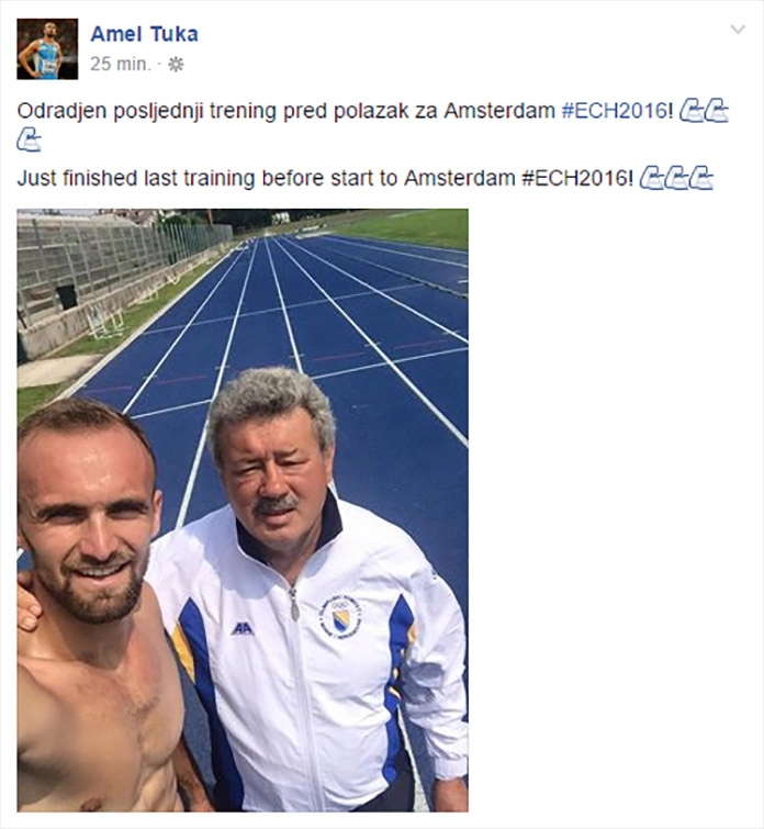 Naš najbolji atletičar Amel Tuka jutros je odradio posljednji trening pred polazak na Europsko prvenstvo.