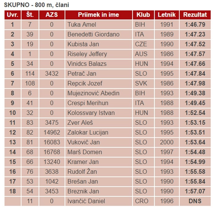 Podsjetimo, prošle godine Tuka je pobjedom na ovom mitingu pokazao da ima odličnu formu i tada je zabilježio vrijeme 1:44,19.