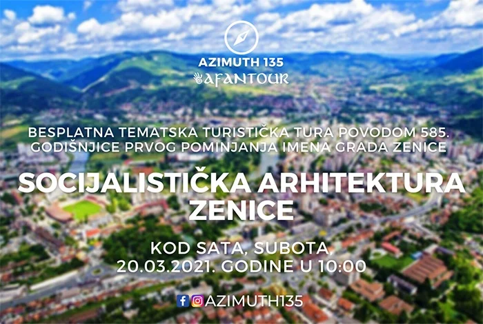 U povodu 585. rođendana grada Zenice, organizujemo tradicionalnu besplatnu tematsku turistički turu “Socijalistička arhitektura Zenice”. Poklon je to gradu, sugrađanima, ali i gostima, peti put zaredom, od turističkog i planinarskog vodiča Afana Abazovića.