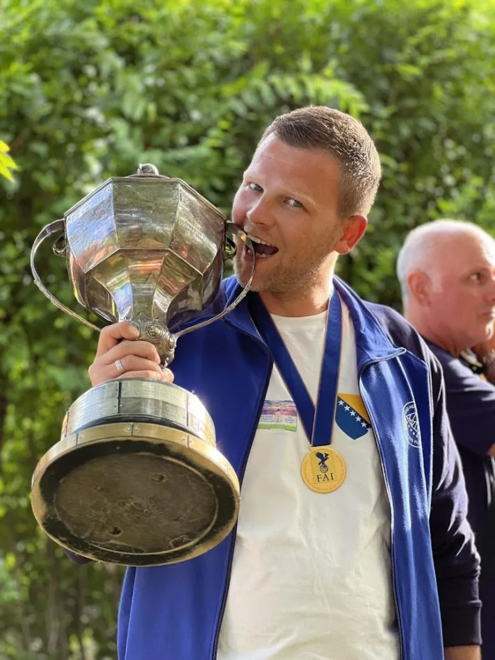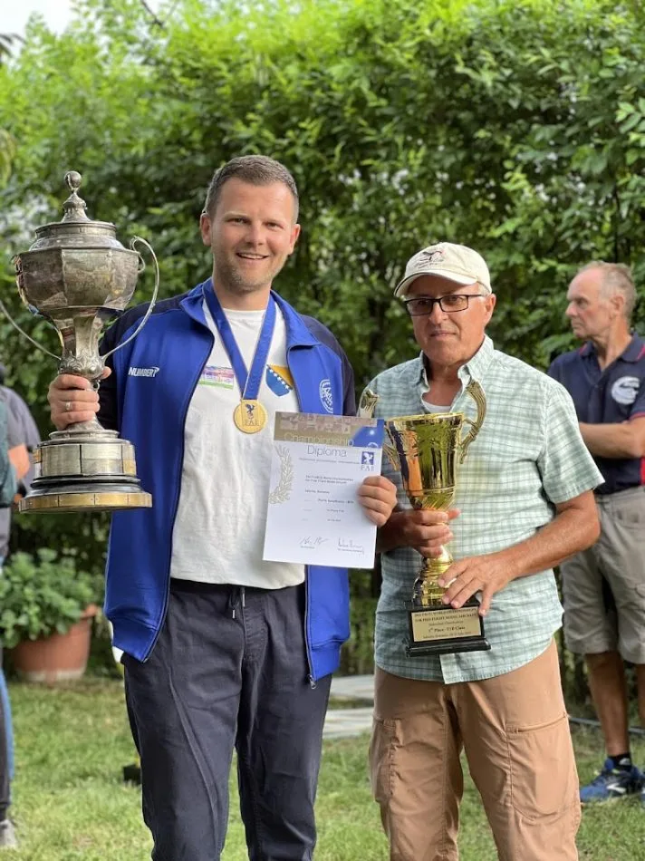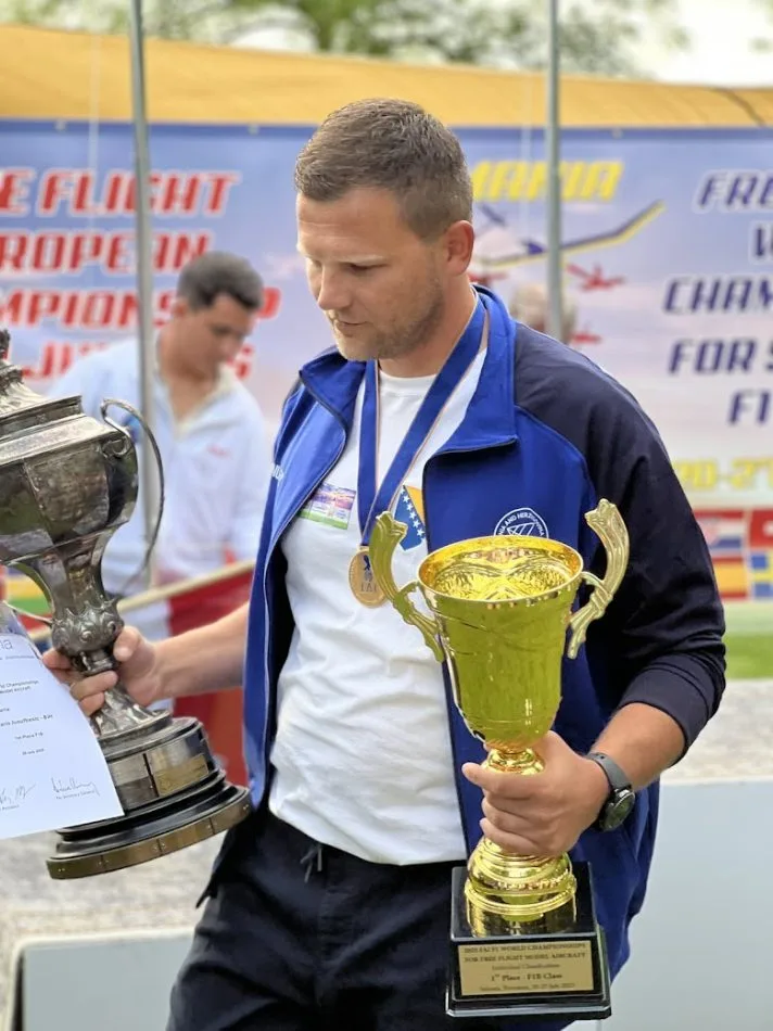 Uprkos izuzetno jakoj konkurenciji i teškim uslovima, Haris Jusufbašić, član Aerokluba “Izet Kurtalić” iz Visokog, briljirao je u kategoriji F1B i osvojio zlatnu medalju, postavši svjetski prvak za 2025. godinu. Njegov uspjeh je još značajniji jer je nakon 26 godina ponovo intonirana himna Bosne i Hercegovine na jednom svjetskom prvenstvu.