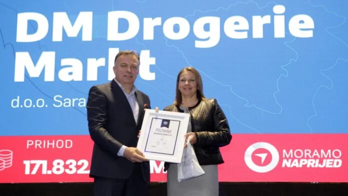Na 33. po redu izboru „100 najvećih u BiH“, projektu kojeg tradicionalno organizuju Poslovne novine u suorganizaciji sa Vanjskotrgovinskom komorom (VTK) BiH i bonitetnom agencijom LRC Sarajevo, kompaniji dm drogerie markt BiH dodijeljeno je priznanje „100 najvećih u BiH” za prvo mjesto u djelatnosti Trgovina na malo kozmetičkim i toaletnim proizvodima u specijaliziranim prodavnicama.