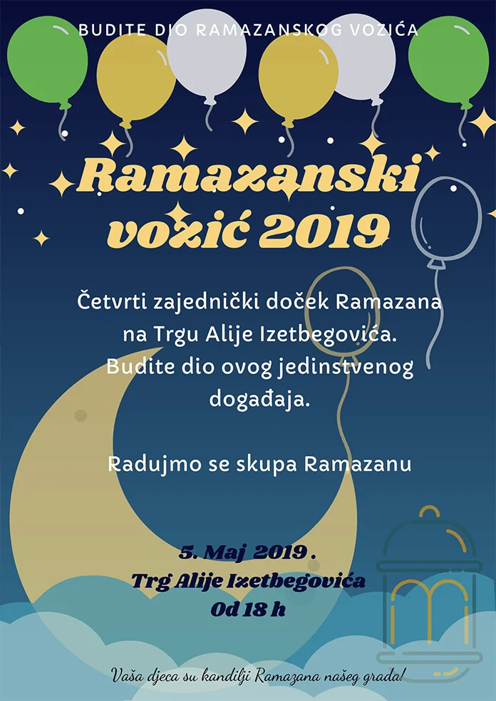 Vozić će se kretati uz tradicionalnu ilahiju “Ramazan” sa Trga Alije Izetbegovića sve do Carine, gdje će se okrenuti i vratiti na početnu tačku. Po povratku, uslijedit će iščekivanje akšamskog ezana, koji će se ove godine učiti javno sa pozornice