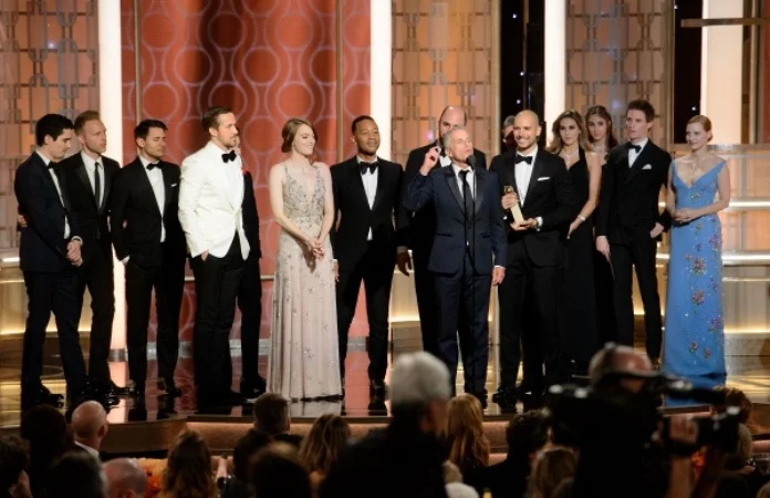 “La La Land” osvojio je Zlatne Globuse za najbolji mjuzikl, najbolju režiju, najbolji scenarij, najbolju filmsku muziku (Justin Hurwitz) i najbolju pjesmu (‘City of Stars’ kompozitora Justina Hurwitza). Glavni glumci filma Ryan Gosling i Emma Stone nagrađeni su za svoje izvedbe u ovoj romantičnoj priči o mladoj glumici u usponu i jazz muzičaru.