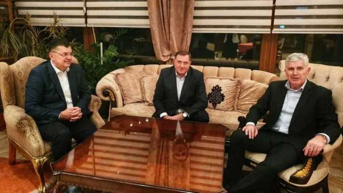 Lideri SNSD-a i HDZ-a Milorad Dodik i Dragan Čović sastali su se u petak navečer u Banjaluci sa predsjedavajućim Savjeta ministara Zoranom Tegeltijom.
