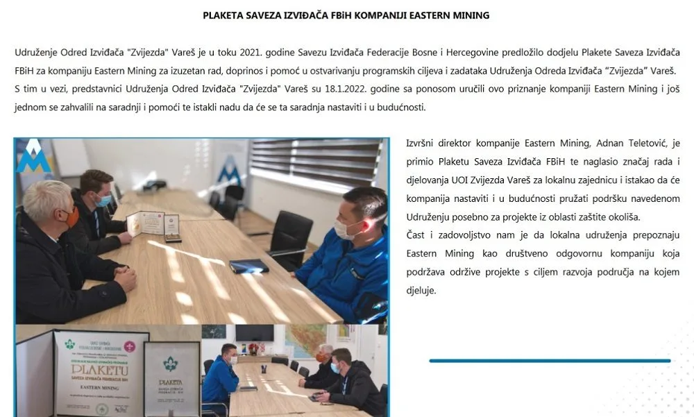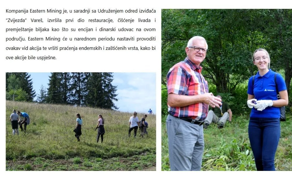 U javnosti se prikazuje kao društveno odgovorna kompanija koja bi trebala donijeti prosperitet u općinu Vareš nakon decenija privrednog zastoja i demografskog odumiranja, ali se zanemaruje izrazito negativan uticaj na životnu sredinu djelatnosti eksploatacije ruda. Svjesni smo da EU i Velika Britanija imaju strategiju smanjenja ovisnosti snabdijevanja mineralnim sirovinama iz Kine, ali Bosna i Hercegovina ne smije postati nova rudarska kolonija Evrope.