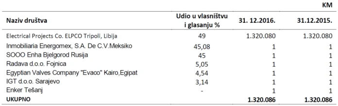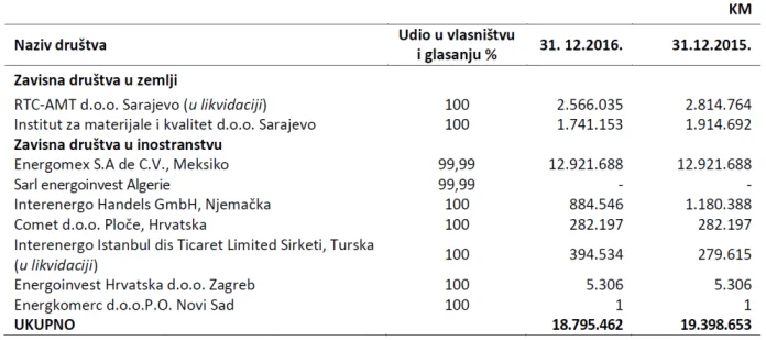 Energoinvest je povezan i sa nizom firmi, a dana 31. decembra 2016. godine imao je učešće u kapitalu sljedećih povezanih pravnih lica.