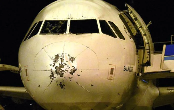Turski mediji izvještavaju da je avion Atlas Jeta bio prisiljen sletjeti na Ataturk nakon što je grad razbio vjetrobran.
