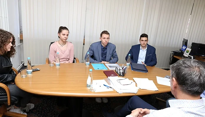 Emir Baručija, Jana Jerkić i Ilhana Fejzić upoznali su gradonačelnika Kasumovića sa svojim aktivnostima vođenim na ponovnom otvaranju jedinog bazena zatvorenog tipa u našem gradu.