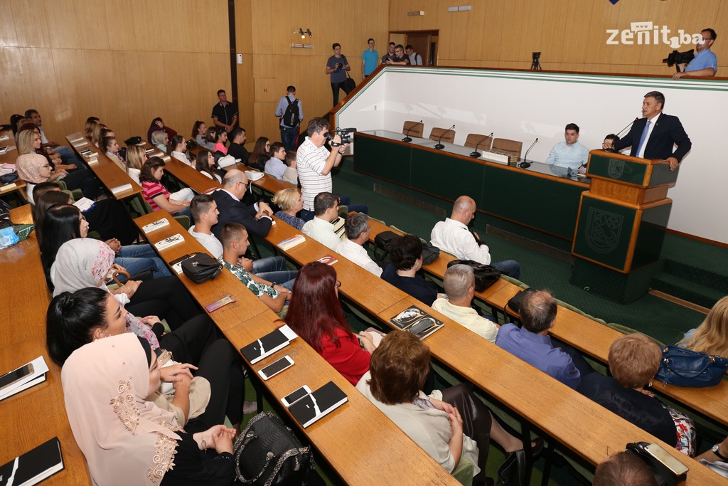 “Državom i ovim gradom se ne može upravljati lažima i parolama, nego znanjem kojeg vi imate i nastavljate sticati. Uvjeren sam da ste upravo vi, generacija koja ovaj grad treba pozitivno promijeniti i pokrenuti naprijed. Dok završite studije, neki u BiH, neki u inostranstvu, a nadam se da ćete se vratiti u našu Zenicu, Gradska uprava sa mnom na čelu, stvarat će bolji ambijent da stvorimo normalan ambijent i evropsku Zenicu kakva i dolikuje ovim građanima. Volim ljude koji su najbolji u onome čime se bave, a vi ste takvi i nemojte dozvoliti da penzioneri budu najbučnija kategorija. Vi zaslužujete više, kao i penzioneri i svi ljudi u Zenici i BiH jer ima prostora da se ugodnije osjećamo. Nikada nemojte posustajati u toj borbi za bolje sutra. Odaberite zanimanje gdje se najbolje osjećate i birajte zanimanja koja će vam omogućiti da nabrže u BiH dođete do posla. I na kraju, još jednom vam od srca čestitam i želim da nastavite sa školovanjem, da postanete stručni ljudi jer kada radite kvalitetno svi će vas priznati i dobit ćete lakše posao, a pri tome nećete trebati ni stranke obilaziti”, u svome obraćanju najboljim zeničkim srednjoškolcima poručio je Fuad Kasumović, gradonačelnik Zenice.
