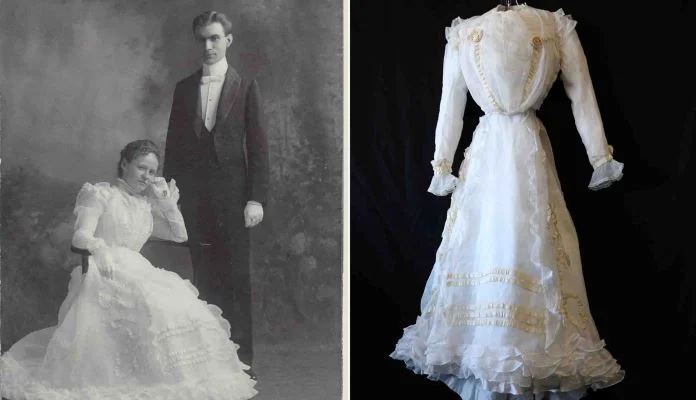 Početak dvadesetog vijeka donosi promjene u dizajnu vjenčanice. Izrađuju se haljine ukrašene čipkom i biserima. Veliki uticaj na modu ostavljaju holivudski glamur i kreacije koje su filmske dive nosile na velikom platnu. Želeći da imaju haljinu “kao iz filma”, mnoge mlade su svoju vjenčanicu nakon svadbe bojile omiljenom bojom zadržavajući samo okovratnik i dugmad bijelim.