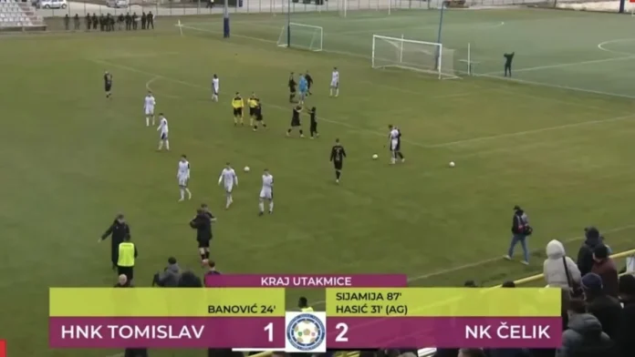 NK Čelik Zenica dolazi do izjednačenja u Tomislavgradu. Nakon jedne akcije pred golom HNK Tomislav, Hasić nespretno reaguje i šalje loptu u vlastitu mrežu. Autogol za 1:1.
