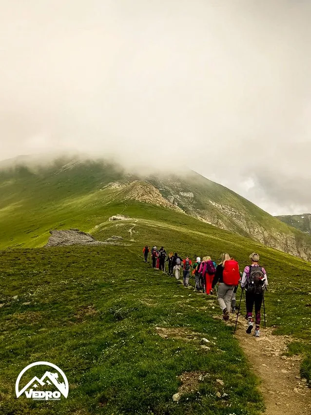 Oblaci ostavljaju bijeli trag magle preko neba, dok se sunce probija kroz njih. Livade zelene kao tepisi, prošarane planinarskim cvijećem u bojama koje izgledaju nestvarno. Drugoj grupi malo teže sa jakim usponima i spustovima preko sipara, a onda taj strmi spust pored žičare… Umor u mišićima, ali duša, ispunjena.
