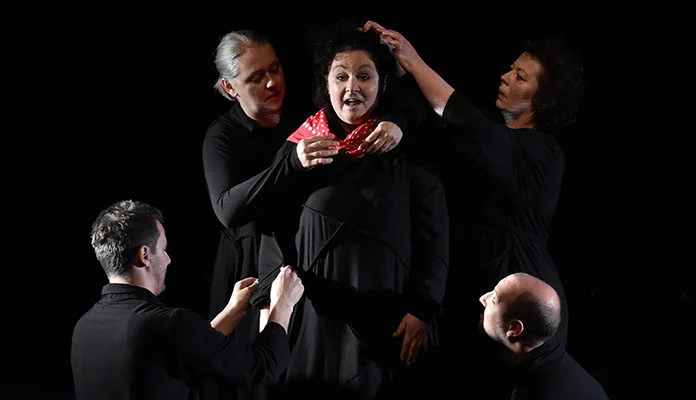 „Ljudožderka“ je savremena angažovana drama koja na primjeru jedne porodice progovara o raspadu i kraju Jugoslavije. Vremenski tok obuhvata vrijeme pred, za vrijeme i poslije rata. Dok se sjećanje na umrlu majku stapa sa sjećanjem na nestalu državu, istovremeno se propituje pozicija glavne junakinje za slijed događaja, a ona je najbolje izražena kroz motiv ‘ljudožderstva’ koji u sebi nosi dvojako značenje. S jedne strane, to je suočavanje s vlastitom krivicom, a istovremeno i pokušaj arhetipskog ponovnog sjedinjenja s onim što je zauvijek izgubljeno. U predstavi igraju glumice i glumci iz ansambla Bosanskog narodnog pozorišta Zenica Lana Delić, Sabina Kulenović, Uranela Agić-Burina, Saša Handžić, Nusmir Muharemović i Dina Mušanović, mlada glumica iz Sarajeva.