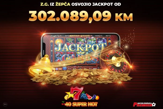 Jackpot euforija u Premier kladionici se ne smiruje! Sinoć je Z.G. iz Žepča postao najnoviji sretni dobitnik, osvojivši impresivnih 302.089,09 KM igrajući popularnu igru 40 Super Hot. Na spinu od 2,40 KM, Z.G. je aktivirao Jackpot Cards bonus i izvukao tri pik karte – što mu je donijelo veliki dobitak!
