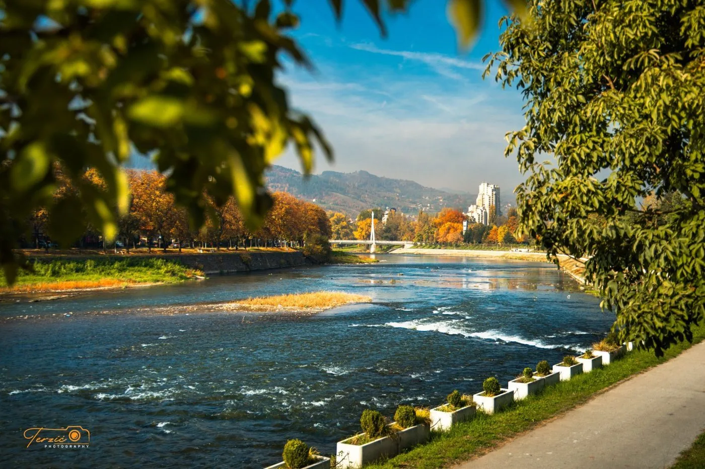 Njegov pogled kroz objektiv je jednostavan, ali pun duše – u svakoj fotografiji osjeća se ljubav prema rodnom gradu. Bilo da je riječ o kadrovima obale Bosne obasjane zalaskom sunca, lišću koje šušti ili panorami grada, Terzić uspijeva da svaki prizor pretvori u umjetnost.