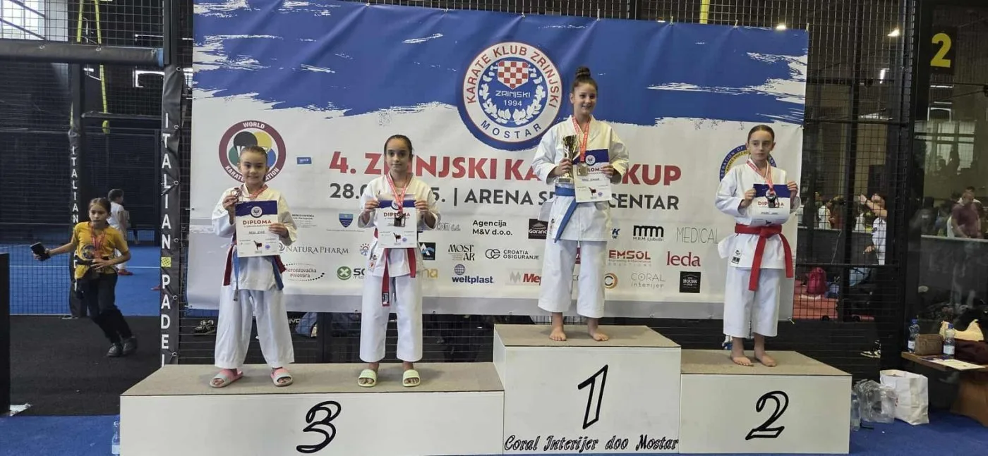 Karate Klub “Perfekt” Zenica ostvario je sjajan uspjeh na Međunarodnom karate turniru “4. ZRINJSKI OPEN 2025”, održanom u nedjelju, 28. septembra u Mostaru. Na ovom prestižnom takmičenju nastupilo je 506 učesnika sa 615 prijava iz 43 kluba iz Slovenije, Hrvatske, Crne Gore i Bosne i Hercegovine. Organizator turnira bio je Karate klub “Zrinjski” Mostar, koji je dobio pohvale za odličnu organizaciju i gostoprimstvo.