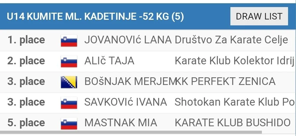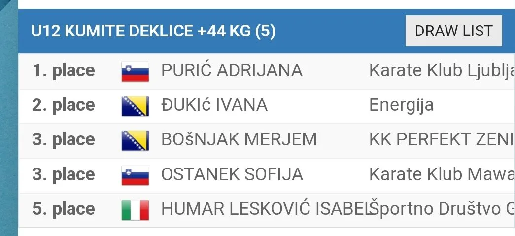 Treće mjesto i bronzanu medalju osvojila je Ejna Bešo, koja je prošle godine bila reprezentativac BIH na Balkanskom prvenstvu. Ejna je, također, zauzela i peto mjesto u kategoriji kate.