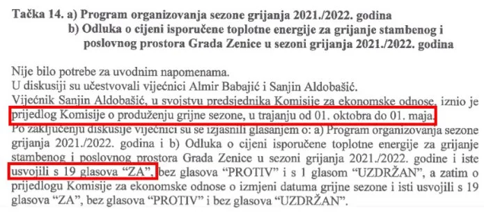 Uostalom, Gradsko vijeće je donijelo odluku da grijna sezona počinje 1. oktobra, tako da je ignorisao i volju Vijeća kao predstavničkog organa.
