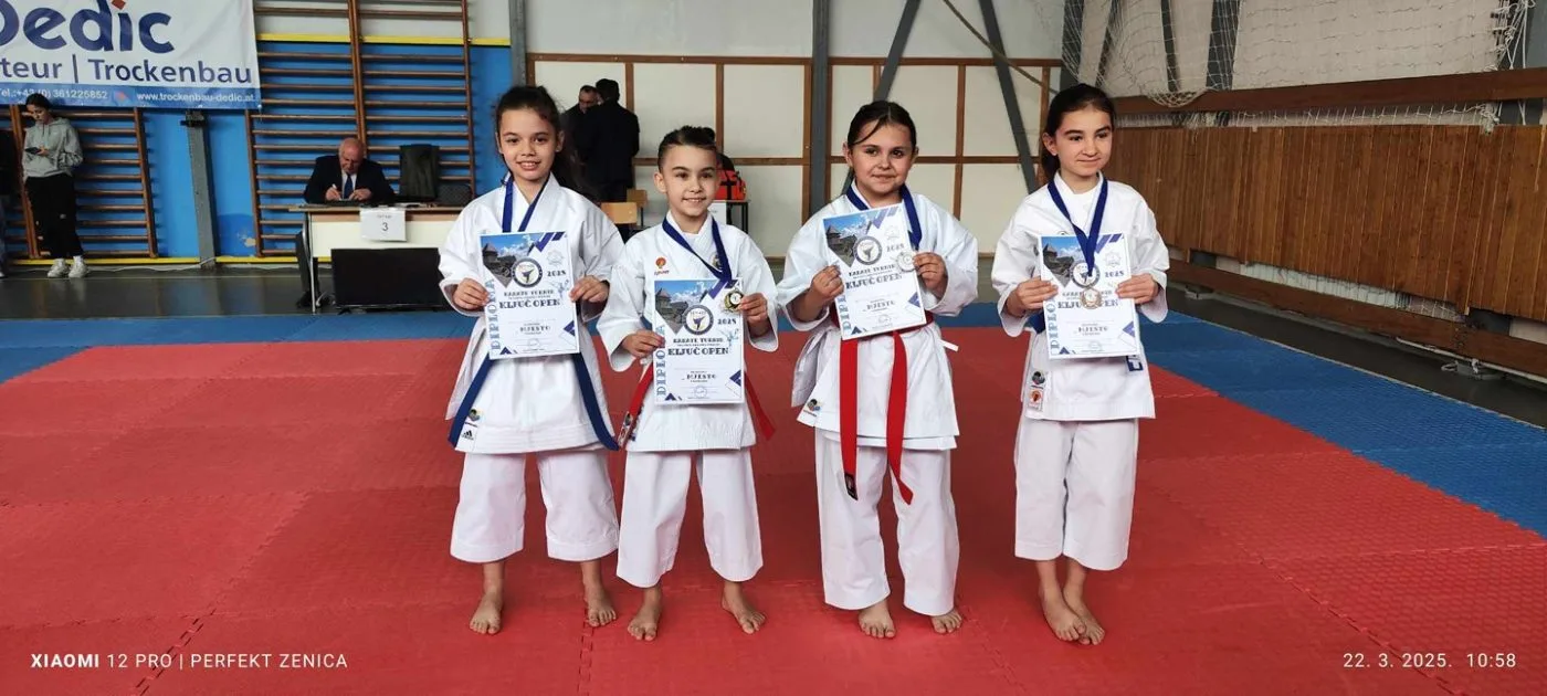 Karate klub “Perfekt” Zenica ostvario je izvanredne rezultate na dva velika takmičenja proteklog vikenda. Na turniru “Ključ Open 2025”, održanom 22. marta, “Perfekt” Zenica se takmičio sa sedam sportista u 24 kategorije, osvojivši ukupno 14 medalja – šest zlatnih, šest srebrenih i dvije bronzane. Ovim uspjehom klub je zauzeo visoko 7. mjesto u ukupnom plasmanu.