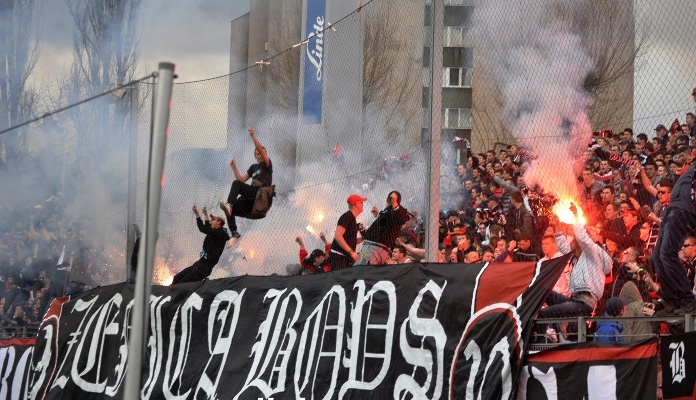 – Bacanjem baklji u teren čim se upale gubi se efekt, pa prema tome bacite je onda ispod sebe, a ne u teren. Neka baklje ostanu na tribini!