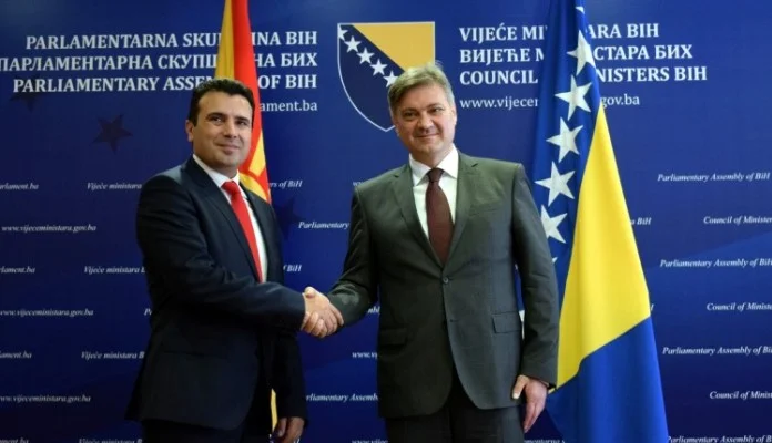 Predsjedavajući Vijeća ministara BiH Denis Zvizdić će dočekati svog makedonskog kolegu ispred zgrade institucija BiH u nedjelju ujutro, nakon čega će biti održani razgovori, a bit će održan i susret članova delegacije Vijeća ministara BiH s članovima delegacije Vlade Republike Makedonije.