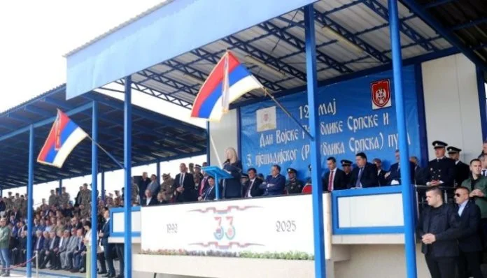 Predsjednik bh. entiteta Republike Srpske Milorad Dodik, ministar odbrane Srbije Bratislav Gašić i predsjednik Skupštine Nenad Stevandić sjedili su tokom intoniranja himne BiH, u kasarni “Kozara” gdje je danas obilježen Dan Vojske RS (VRS) i Trećeg pješadijskog puka (RS) Oružanih snaga Bosne i Hercegovine (OS BiH), javila je agencija Beta.