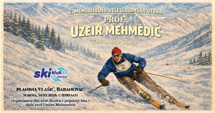 Ski klub Zenica, zajedno s prijateljima i poštovaocima lika i djela profesora Uzeir Mehmedić, organizuje 2. Memorijalnu veleslalomsku utrku “Dobra duša Zenice”, koja će biti održana u subotu, 14. februara 2026. godine, s početkom u 11:00 sati na planini Vlašić.