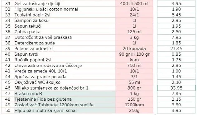 Spisak proizvoda sa zamrznutim cijenama u FBiH