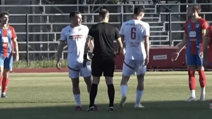 Iako službena lica u početku nisu reagovala na dešavanja na tribinama, veznjak Sloge Dino Hasanović, odlučio je uzeti stvari u svoje ruke.