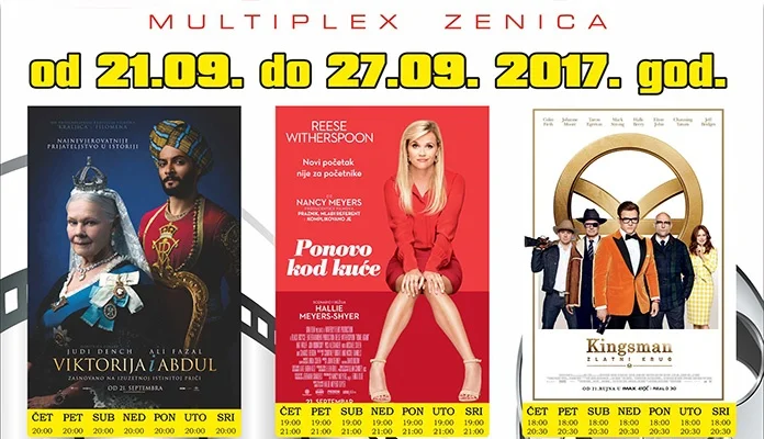 Od čevrtka 21. septembra očekuje vas nevjerovatna filmska sedmica u Multiplexu Ekran uz četiri nova naslova: akcija o nezavisnoj obavještajnoj službi “KINGSMAN: ZLATNI KRUG”, historijska drama “VIKTORIJA I ABDUL”, romantična komedija “PONOVO KOD KUĆE” i za najmlađe posjetioce animirana avantura “LEGO NINJAGO (3D)”