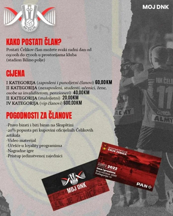 Učlaniti se možete već od sutra od 09:00h u prostorijama stadiona Bilino polje.