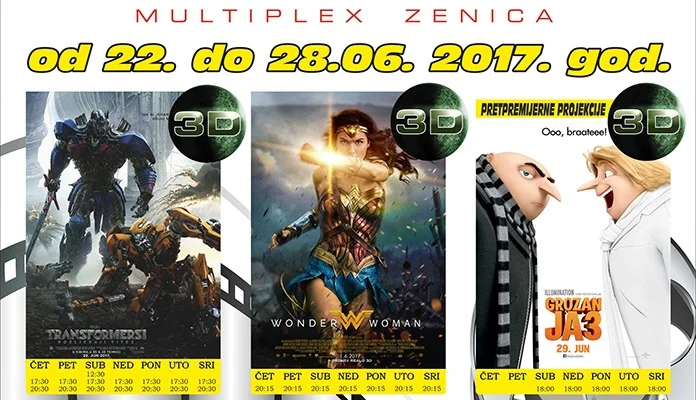 Od četvrtka 22. juna ne propustite pogledati svjetsku premijeru SF akcije “TRANSFORMERS: POSLJEDNJI VITEZ (3D)” i pretpremijerne projekcije animirane komedije “GROZAN JA 3 (3D)”