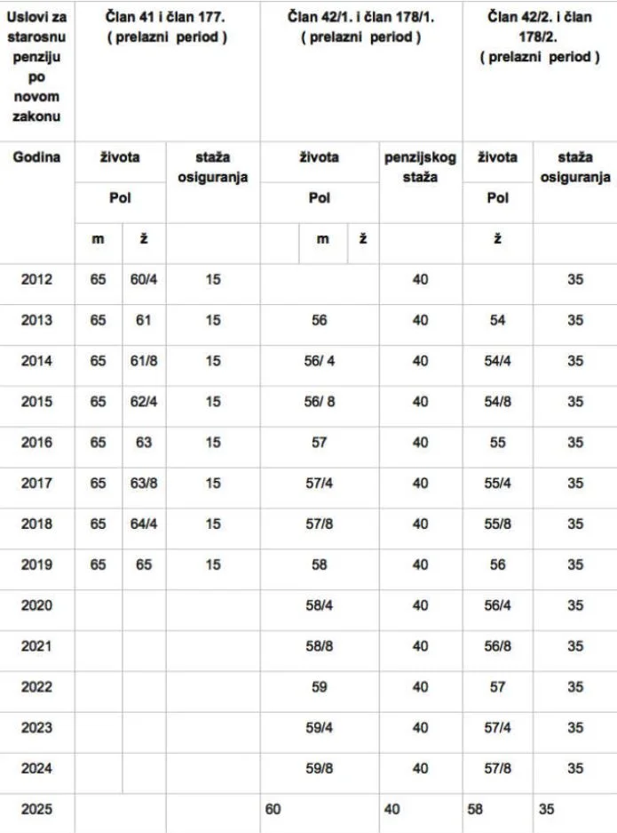 Iz Fonda PIO podsjećaju da je članovima 177. i 178. Zakona o PIO propisano da se navedeni uslovi ne primjenjuju odmah stupanjem na snagu Zakona o PIO, već da se do tih krajnjih uslova za ostvarvanje orava ba staronu penziju dolazi postepeno do 2019. godine, odnosno 2025. godine.