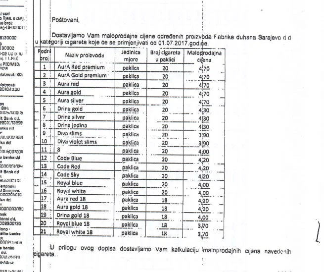 U nastavku pogledajte novi cjenovnik cijena na teržištu BiH od mjesca jula.