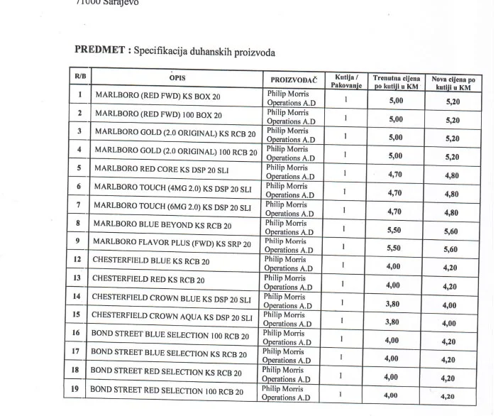 Ranije, od 1. juna kompanija Philip Morris poskupjela je cijene za 19 vrsta cigareta i to za 10 ili 20 feninga.