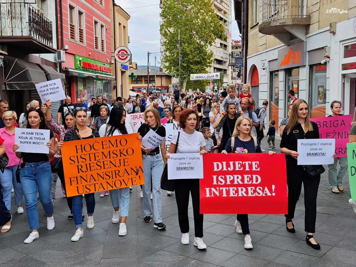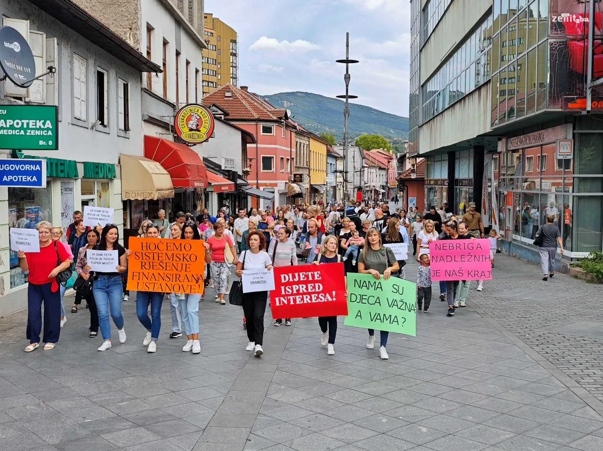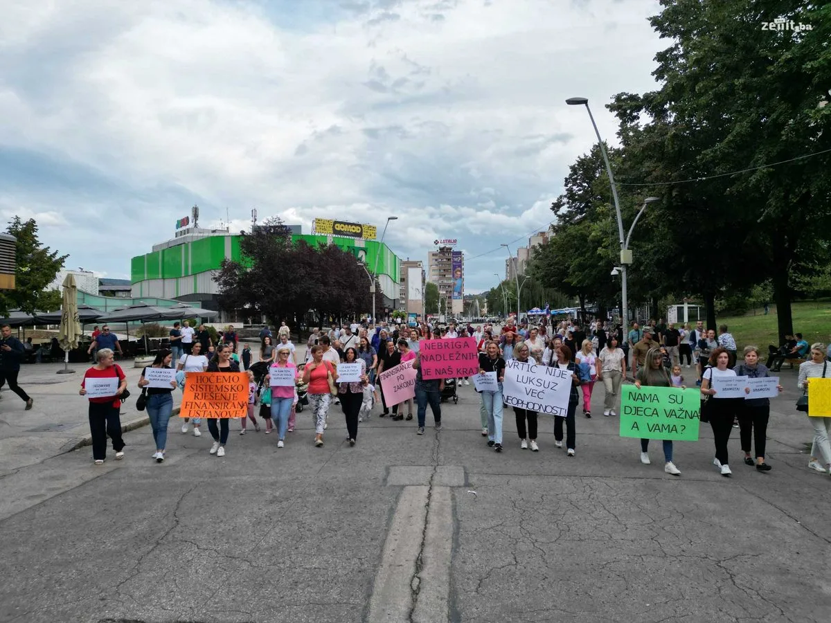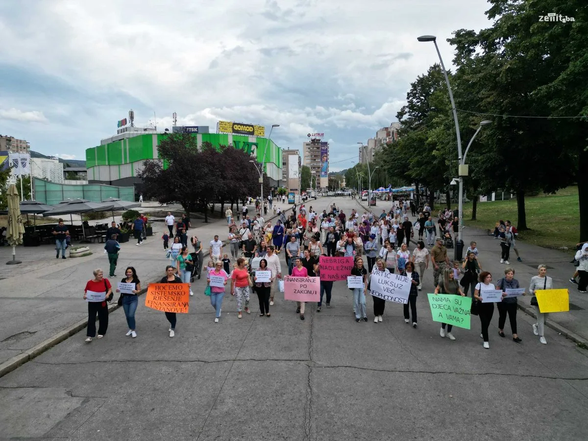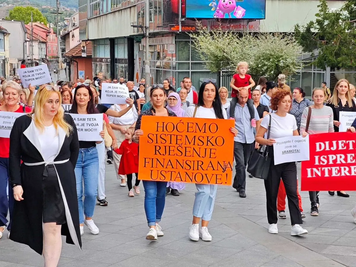 Radnici i roditelji Javne ustanove Predškolski odgoj i obrazovanje Zenica su organizovali mirnu šetnju kako bi skrenuli pažnju na ozbiljne finansijske probleme s kojima se ova ustanova suočava.