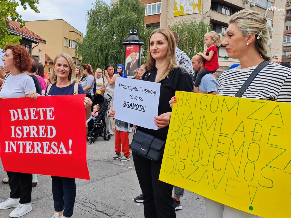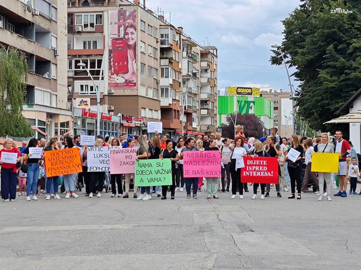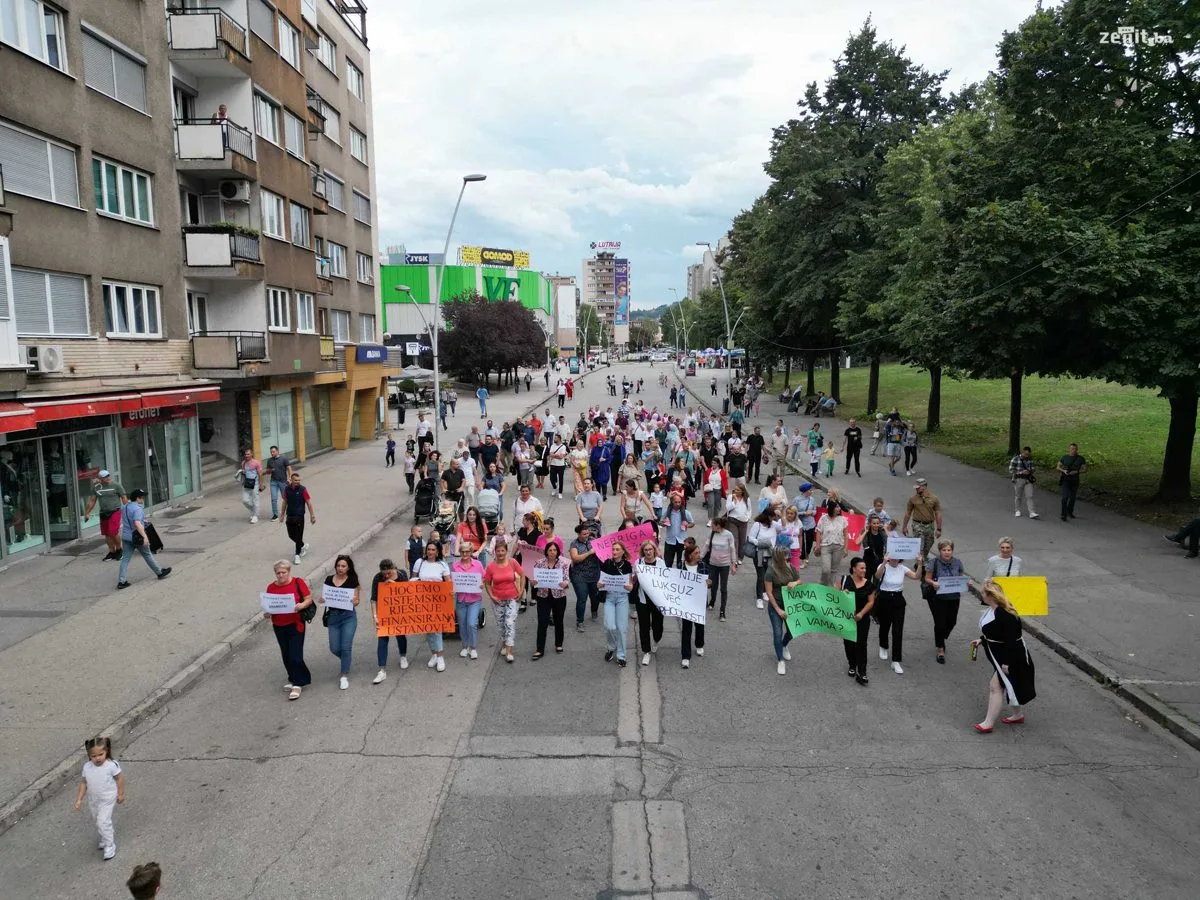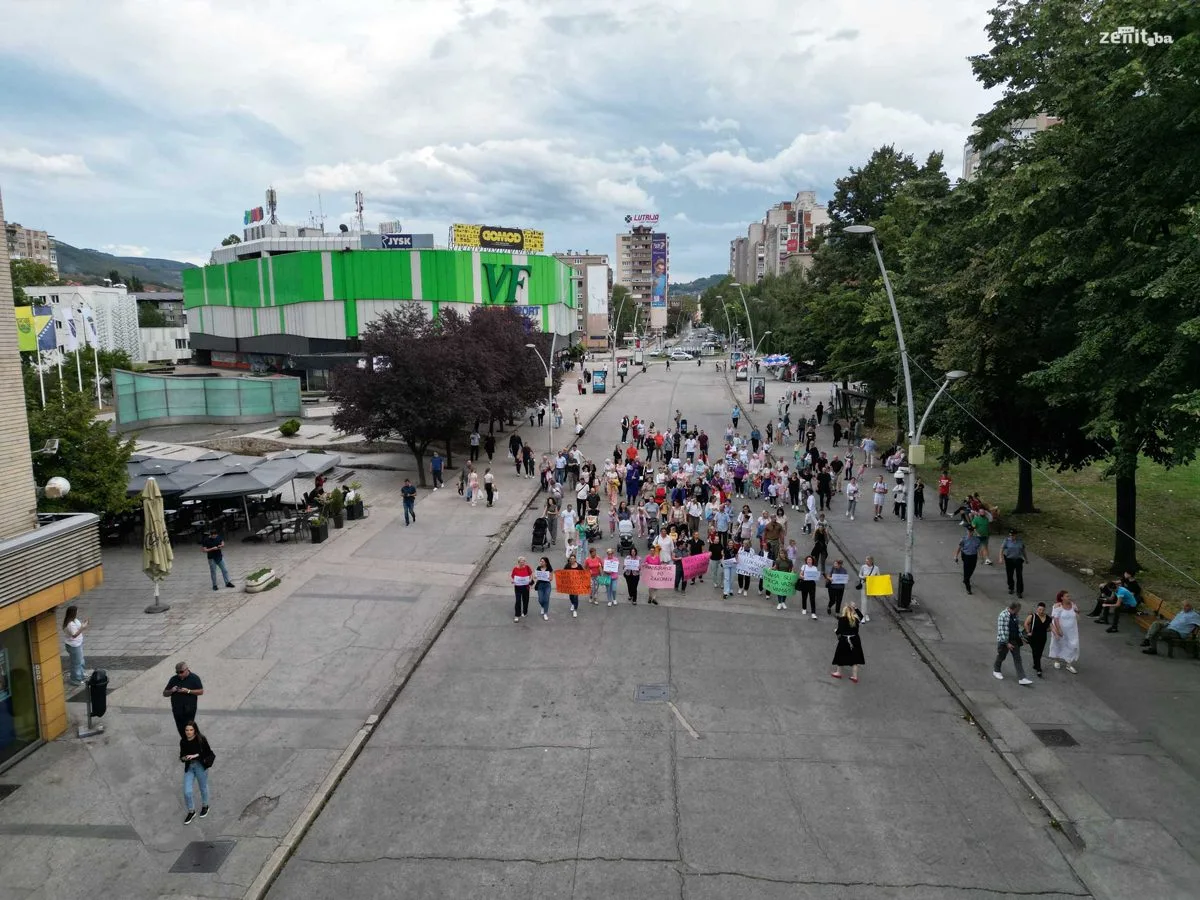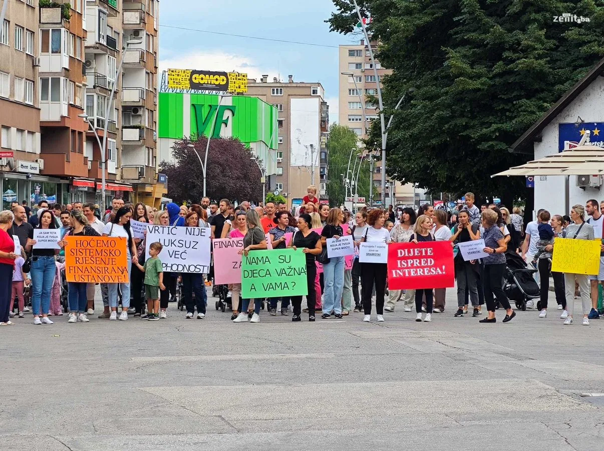 Radnici i roditelji Javne ustanove Predškolski odgoj i obrazovanje Zenica su organizovali mirnu šetnju kako bi skrenuli pažnju na ozbiljne finansijske probleme s kojima se ova ustanova suočava.