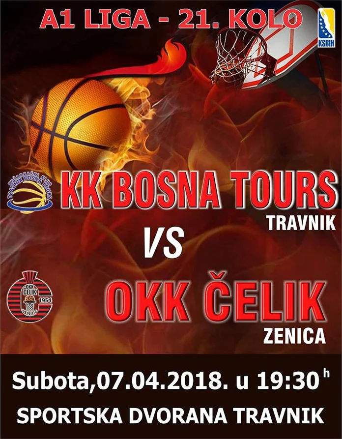 U subotu 7. aprila, u okviru pretposljednjeg kola “A1 Lige”, OKK Čelik gostuje kod ekipe KK “Travnik”. Utakmica se igra u sportskoj dvorani Travnik sa početkom u 19:30 sati.