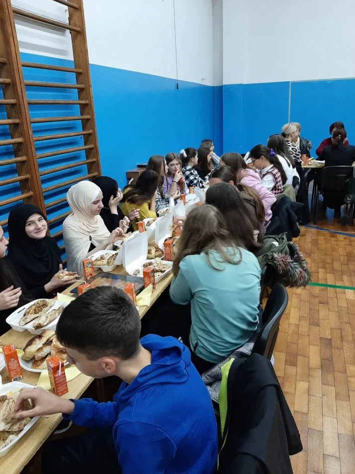 Zajednički iftar je realizovan zahvaljujući učiteljici Mersihi Nuhić kada je početkom ramazana pravila spisak za užinu došla na ideju da organizuje iftar, pa su skoro svi učenici se izjasnili da poste.
