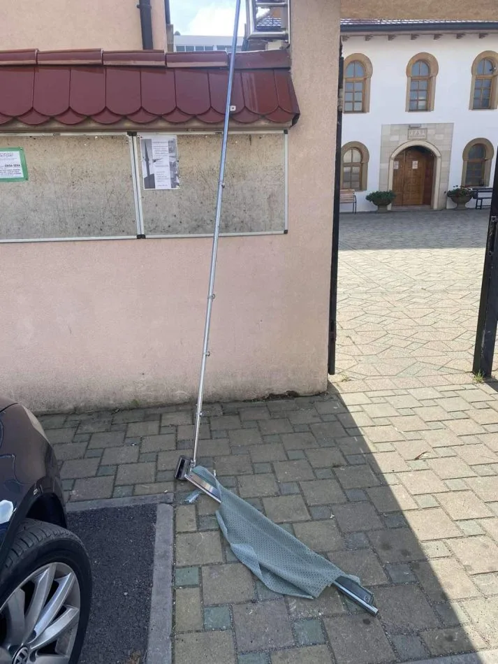 Oskrnavljene zastave na ulazu u Čaršijsku džamiju i Šehidsko mezarje (FOTO)