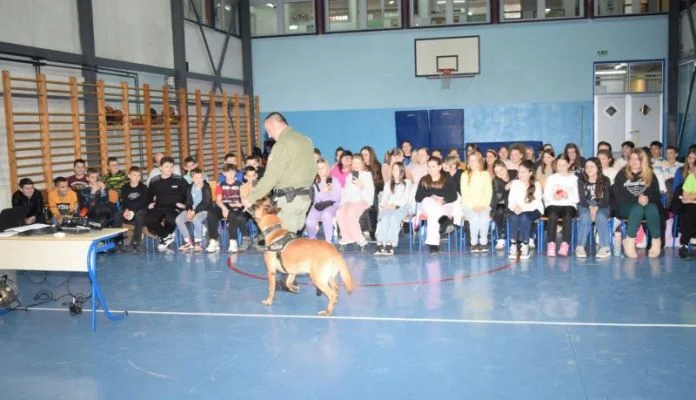U sklopu nastavka realizacije projekta, prva edukativna radionica održana je u Osnovnoj školi “Rešad Kadić” u Tešnju, gdje su učenici šestog razreda imali priliku prisustvovati pokaznoj vježbi Specijalne policijske jedinice sa službenim psom.