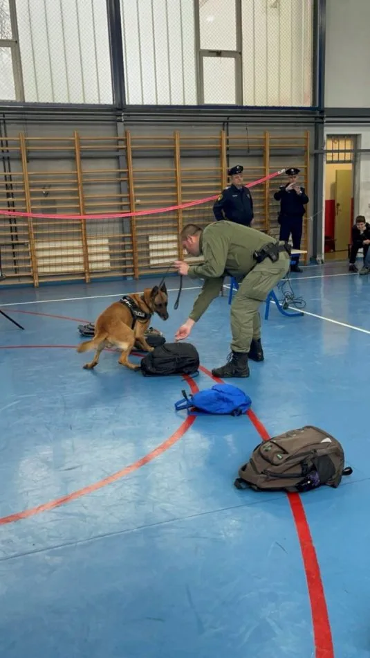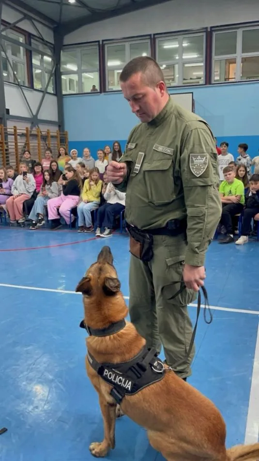 U sklopu nastavka realizacije projekta, prva edukativna radionica održana je u Osnovnoj školi “Rešad Kadić” u Tešnju, gdje su učenici šestog razreda imali priliku prisustvovati pokaznoj vježbi Specijalne policijske jedinice sa službenim psom.