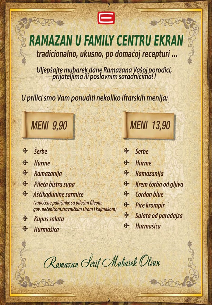 Pogledajte ponudu iftara u restoranu Multiplexa Ekran