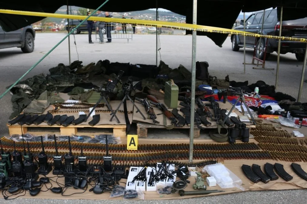 Ministar unutrašnjih poslova Kosova Xelal Svecla izjavio je da je zaplijenjeno jedno teško oklopno vozilo, 24 džipa, dva četverotočkaša 4×4, osam protivpješadijskih mina, 29 zolja, granate za minobacače, 150 komada dinamita, šest mitraljeza, 21 pancir, tri drona, 15 noćnih dvogleda, 32 radioveze, 115 vojnih uniformi, 6 satelitskih karti, tri topografske karte, 23 maske, 32 pametna telefona, 32 sim kartice.