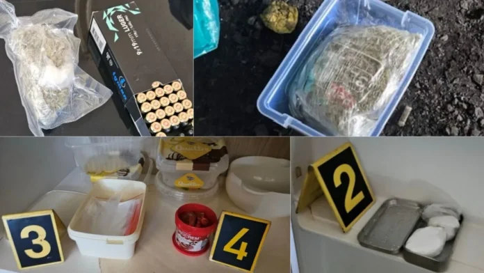 U nastavku ovih aktivnosti, na navedenoj lokaciji je izvršen pretres lica K.H., rođen 1980. godine, iz Teslića, kod kojeg je pronađena materija koja svojim izgledom asocira na opojnu drogu težine 55 grama, pištolj i 49 komada pištoljske municije. Navedeno lice je lišeno slobode zbog postojanja osnova sumnje da je počinilo krivična djela: “Neovlaštena proizvodnja i stavljanje u promet opojnih droga” iz člana 238. Krivičnog zakona Federacije BiH i krivično djelo iz člana 52. Zakona o nabavljanju, držanju i nošenju oružja i municije Zeničko-dobojskog kantona, te je nad istim zavedena kriminalistička obrada.
