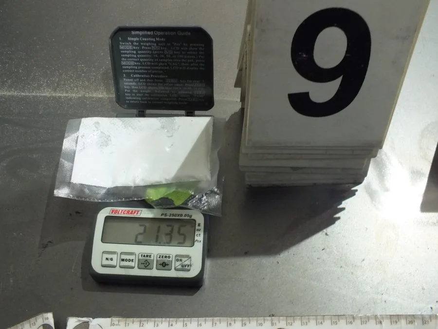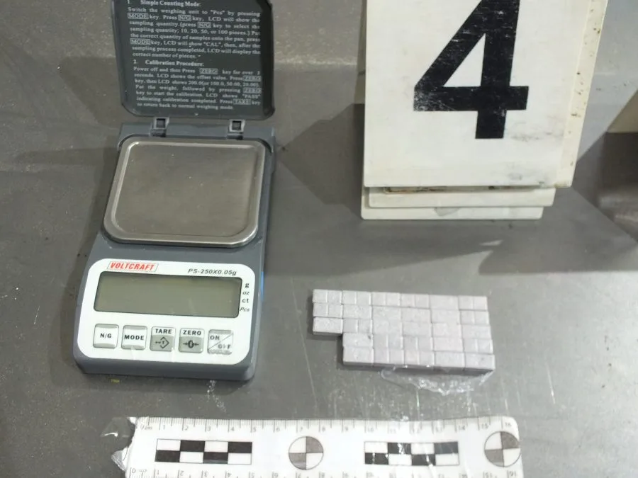 – tri pakovanja sa sadržajem praškaste materije koja svojim izgledom asocira na opojnu drogu “Speed”, bruto težine 135,05 grama,