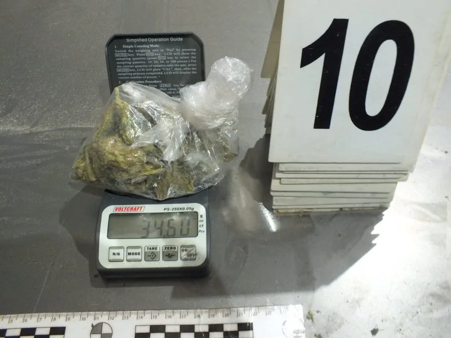 – jedno pakovanje sa sadržajem biljne materije koja svojim izgledom asocira na opojnu drogu “Marihuana”, bruto težine 34,60 grama i