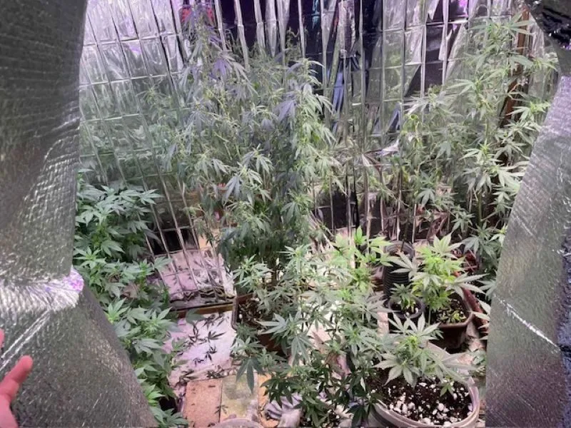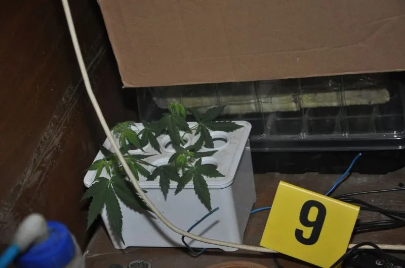 Prilikom pretresa, u prizemlju kuće je pronađena improvizovana laboratorija namjenjena za uzgajanje indijske konoplje sa opremljenom rasvjetom i sistemom zagrijavanja/hlađenja potrebna za kontrolisani uzgoj. U navedenoj laboratoriji, u boksovima za uzgoj indijske konoplje su pronađene 53 uzgojene stabljike u različitim fazama rasta visine od 10-120 cm koje svojim izgledom asociraju na indijsku konoplju, posađene u saksijama, te 42 sadnice u posudi sa vodom koje svojim izgledom asociraju na indijsku konoplju.