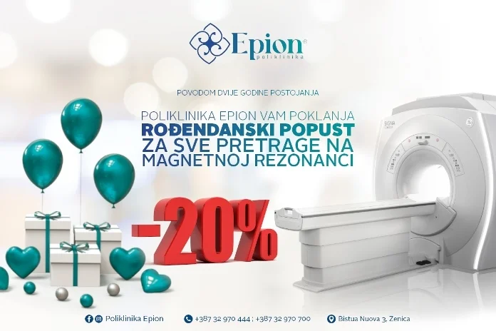 Sve one koji posjete Polikliniku Epion očekuje popust na usluge magnetne rezonance 20 posto, zatim  CT pretrage do 20 posto. To znači da pretragu na uređaju magnetne rezonance možete uraditi po cijenama već od 200,00 KM, a pretrage na CT uređaju po cijenama već od 90,00 KM. Međutim, prigodnim iznenađenjima tu nije kraj, budući da vas očekuju i akcijske cijene laboratorijskih usluga, ali i interesantne nagradne igre.